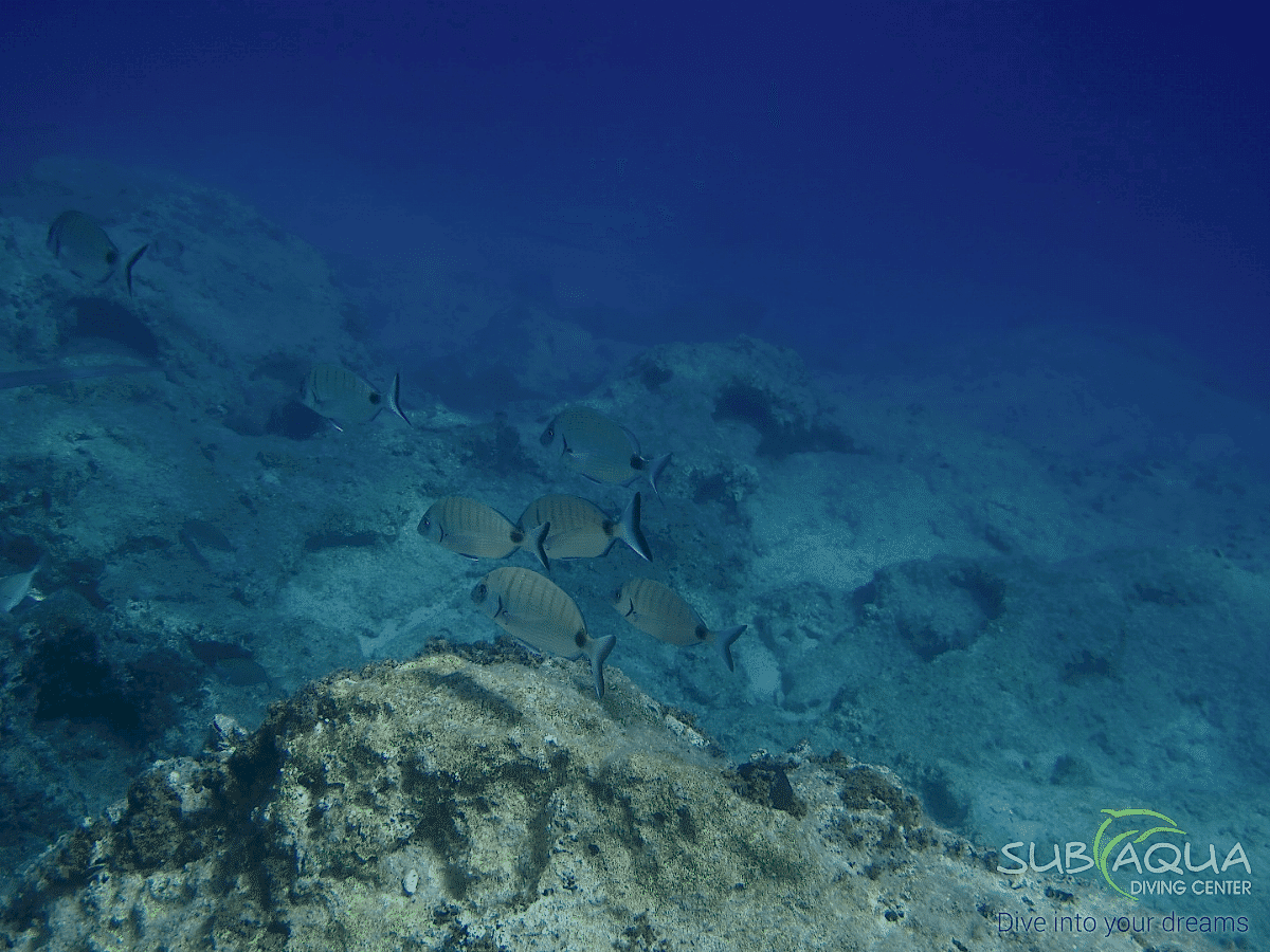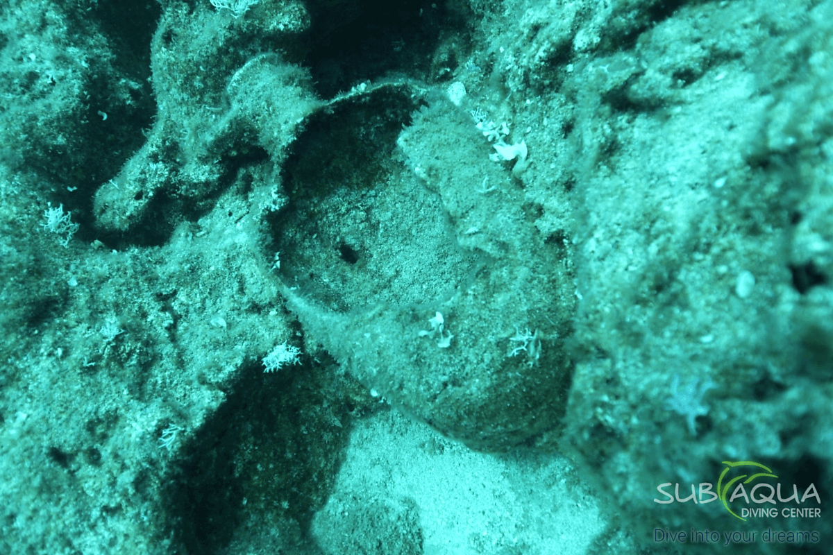 Divers usually begin by visiting the deeper part of the reef — including the wreck — before slowly ascending to explore the shallower amphora zone. The reef’s tiered structure makes navigation simple and safe, with plenty of opportunities for long, relaxed dives and perfect safety stops around 5 meters near the boat.